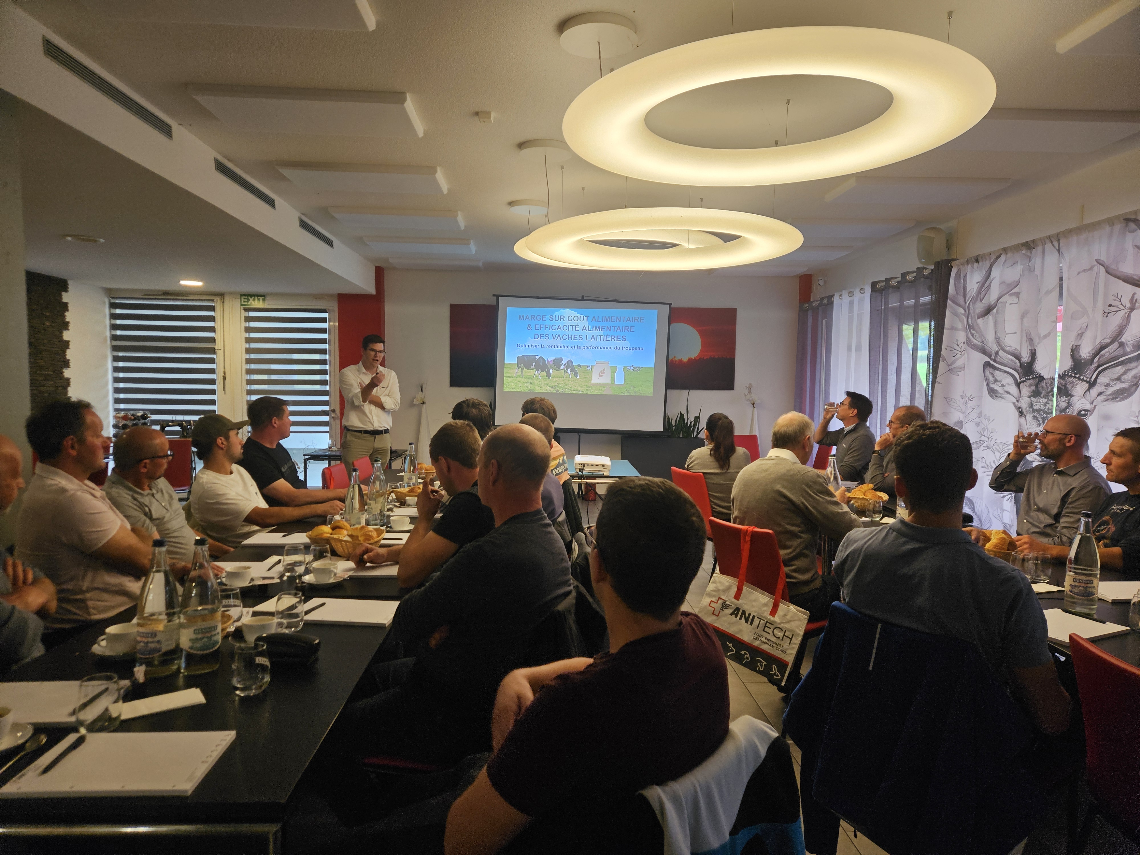 Diese Konferenz wurde von Michel Roulin Entwicklungsleiter eröffnet, in dem er ANITECH S.A. und unsere Rolle im Rahmen der Zusammenarbeit mit der Mühle Romont vorstellte. Anschliessend wurde die Veranstaltung von den Agraringenieuren Julien Dorthe und Lisiane Lugeon moderiert, die konkreten Ansätze zur Optimierung der wirtschaftlichen Leistung von Milchviehbetrieben teilten.